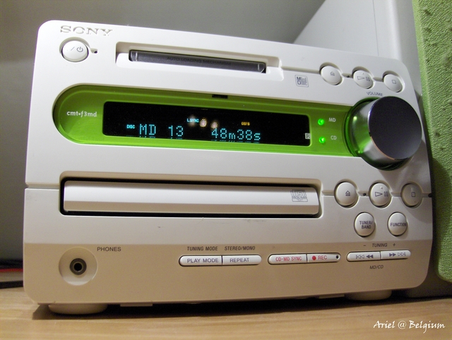 我有一台陪伴著我很多年的白色Sony CD/MD音響,它擁有MD/CD對錄的功能,當時也是因為這個功能,讓我非常喜愛;音箱的音質,也表現非常細膩。喜歡聽音樂的我,這台Sony音響,於是就成了我的最愛。當初,因為有MD/CD對錄功能,可以將市面上銷售的學英文的CD片,轉錄到較小型的MD上,讓三年前還在台北上班當捷運公車族的我,可以帶著邊走邊聽學英文。另外,回到家後,也會不斷播放英文語言CD與廣播,來刺激我的英文聽力。